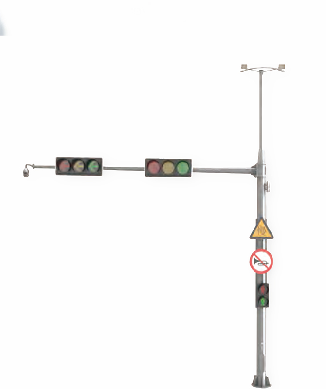 Is cineál saoráide comhartha tráchta iad soilse tráchta. Is féidir leis an cuaille solais lárnach comharthaí tráchta agus soilse comhartha a chur le chéile, agus is féidir cuaille amháin a úsáid chun ilchuspóirí. Úsáidtear soilse comhartha go forleathan i gcórais tráchta. Is féidir iad a phróiseáil i bpíosaí agus i sonraíochtaí éagsúla de réir riachtanais iarbhír. Tá an corp cuaille déanta as cruach ardcháilíochta, agus áirítear sa chóireáil frith-chreimthe galbhánuithe snáithe te, plaisteach spraeála te, alúmanam spraeála te agus modhanna eile. $ $