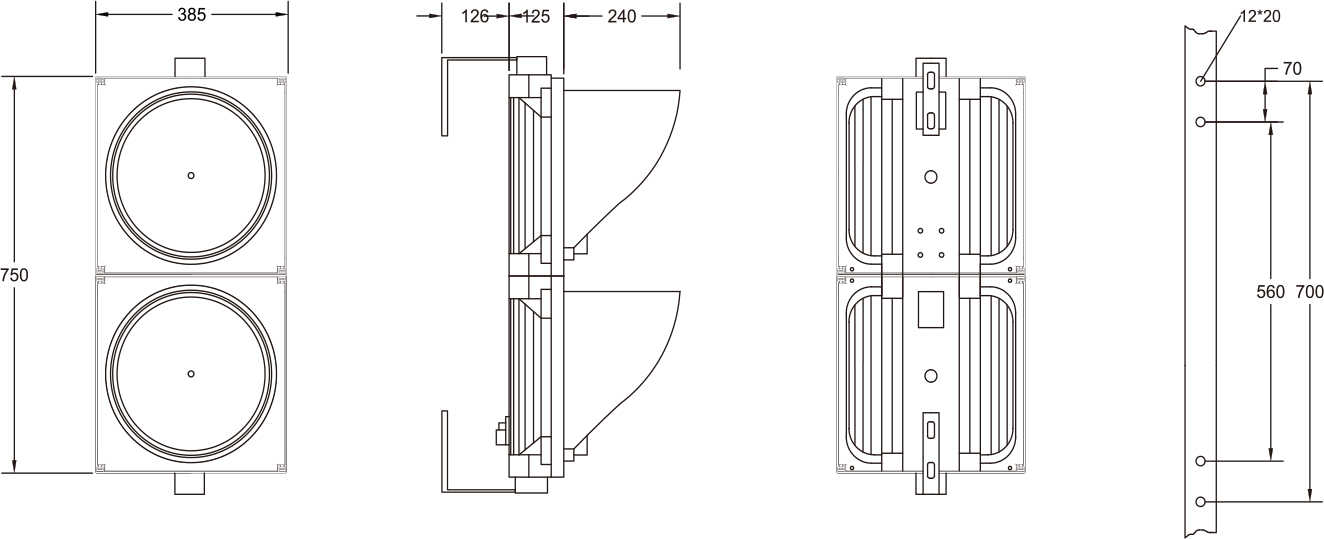 | XT-009C | LED | R 8 525 | 220V (110V) 50/60 Hz | <40W | ≥4000 CD/M2 | R/y/g | 20in | Trí dhigit agus go leith | ≥200m | 999 | pláta cruach | 1100*660*80 |